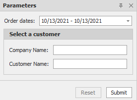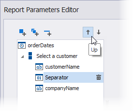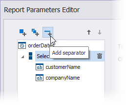 The example below shows the Parameters panel with a separator between the Company Name and Customer Name parameters.
