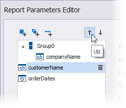 Use the Up and Down buttons to change the order of parameters and groups, and place parameters inside or outside a group.