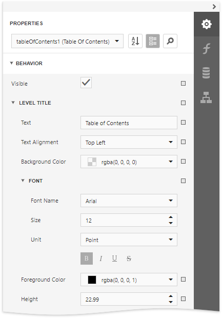 To customize a specific level individually, add a corresponding item to the Levels collection of the table of contents and customize its properties.