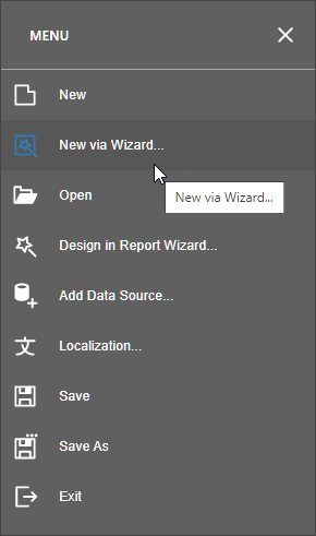 In the designer menu, click New via Wizard.