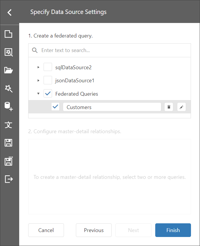 The Wizard creates a new FederationDataSource that includes similar data from both data sources.