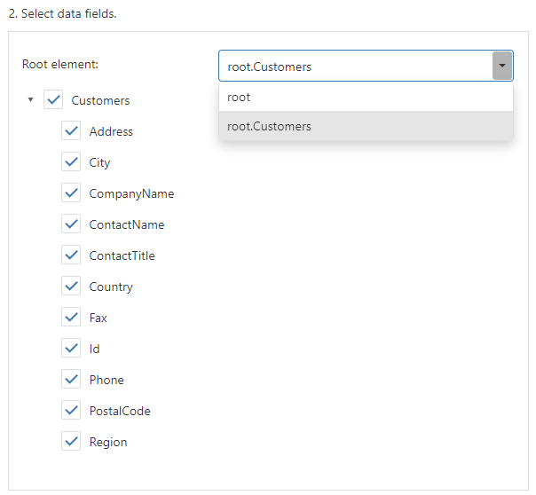 This wizard page also shows the specified JSON data’s structure. You can choose all nodes or a subset of nodes.
