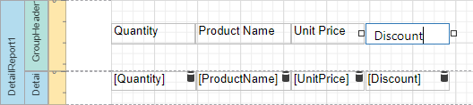 Add the Group Header band to the detail report to display captions for table columns. Select the Detail Report band and click Insert Group Header Band in the context menu.