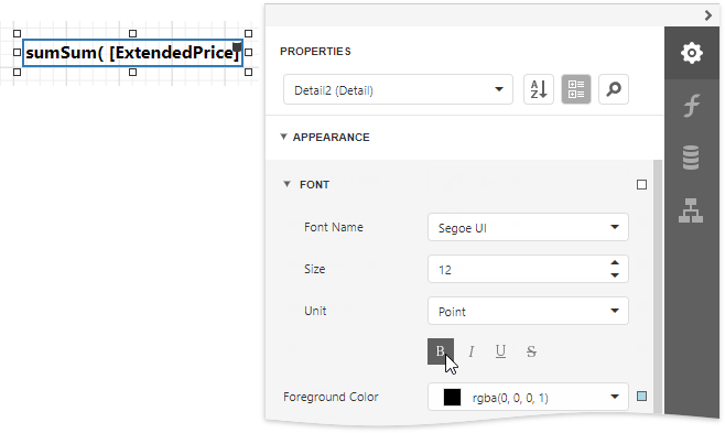 In the detail report’s Detail band, select the cells bound to the UnitPrice and ExtendedPrice fields. Invoke the Format String Editor once again and choose the format preset from the Currency category (for instance, c2).