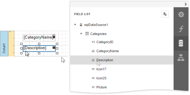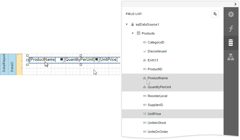 Drop the required data fields from the Field List onto the Detail band.