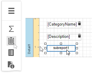 Drop the Subreport control from the Toolbox onto the Detail band.
