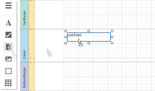 Drop the Rich Text control from the report controls Toolbox tab onto the Detail band.