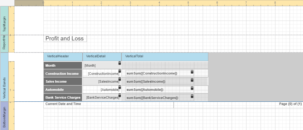This tutorial describes how to use vertical bands to create a report where record fields are arranged vertically and data records are printed horizontally.