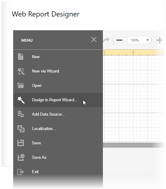 Open the Web Report Designer’s menu. Select Design in Report Wizard.
