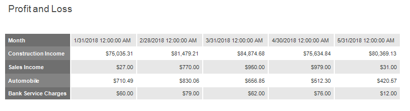 Specify page settings (Landscape orientation) and set the title (Profit and Loss).