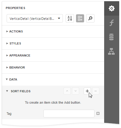 Contains a table with a single column that displays data field headers. - Vertical Details band