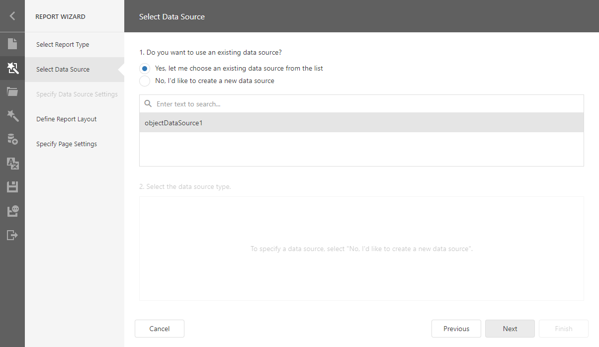 Select a data source for the report.