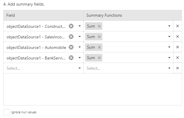 - Add summary fields: