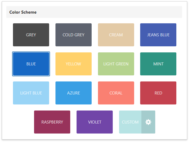 Choose the report’s color scheme. The wizard creates report styles based on the selected color for the first-level report controls and applies styles with more transparent colors to controls at deeper levels.