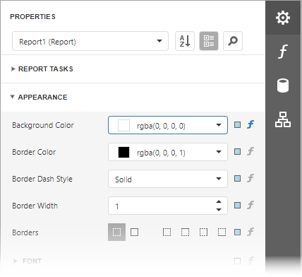 tab on the side panel to invoke the Properties panel.- Select an element in the Report Explorer panel and click the