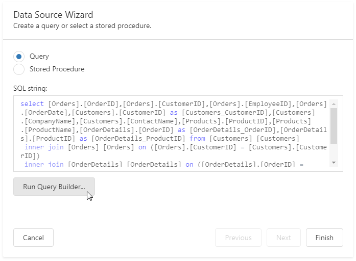 Click Run Query Builder in the invoked Data Source Wizard.