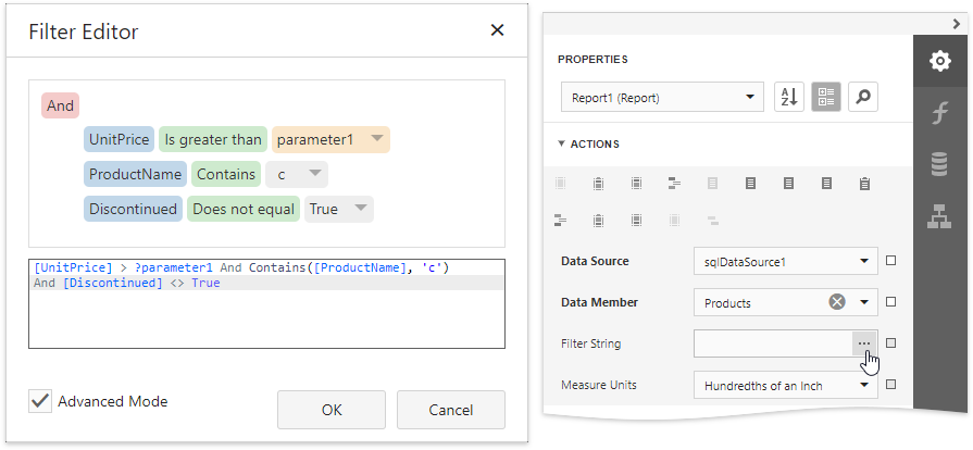 Expand the Tasks category and click the Filter String property’s ellipsis button.
