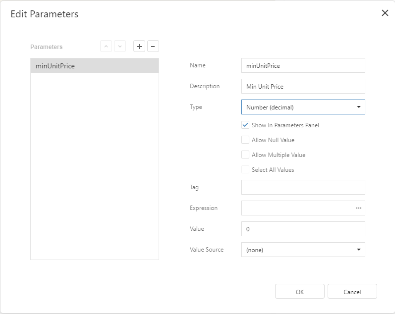 Switch to the Field List panel, select the Parameters node and click Add parameter.