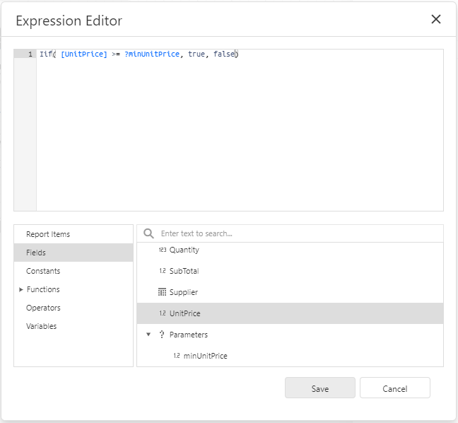 Iif( [UnitPrice] >= ?minUnitPrice, true, false)