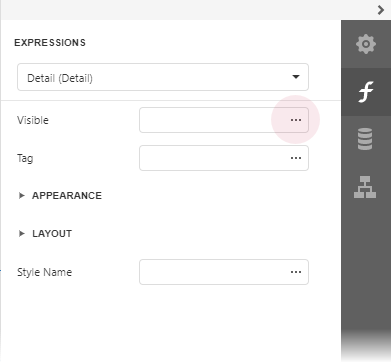 Select the report’s detail band, switch to the Expressions panel and click the Visible property’s ellipsis button.