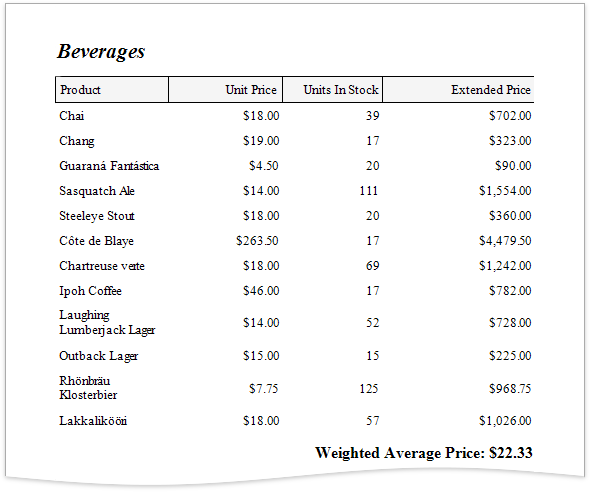 You can also use the control’s Format String property to format the summary’s value. For instance, set this property to Weighted Average Price: {0:c2}.