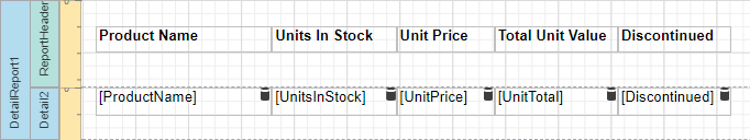 Create a new or open an existing data-bound report. This tutorial starts with the following report layout: