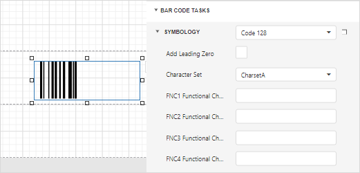 In the property grid, expand the Symbology list and specify the following properties specific to Code 128: