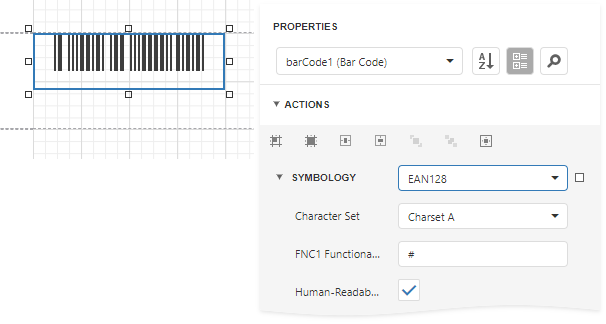 In the property grid, expand the Symbology list and specify the following properties specific to EAN 128: