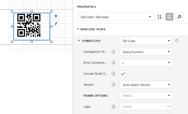 In the property grid, expand the Symbology list and specify the following properties specific to QRCode:
