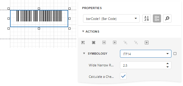 In the property grid, expand the Symbology list and specify the following properties specific to ITF14:
