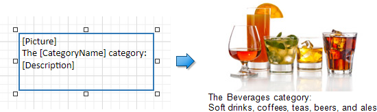This topic describes how to provide data to report controls using the advanced Mail Merge binding method. This feature allows you to create templates in which data source values populate specific fields while other text remains constant (that is, allows you to combine static and dynamic content within the same control).